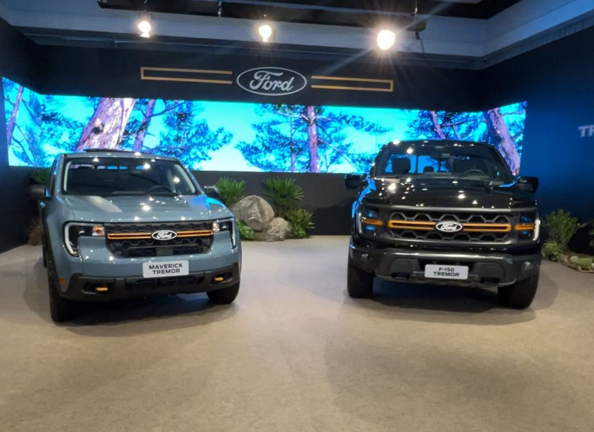 A Ford mostrou sua nova linha Tremor que deve chegar ao Brasil ainda em 2025. Apesar de não confirmar nenhuma informação, oficialmente, a marca mostrou a Maverick Tremor e a Ford F-150 Tremor.